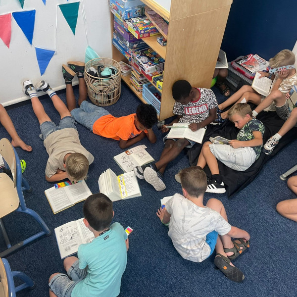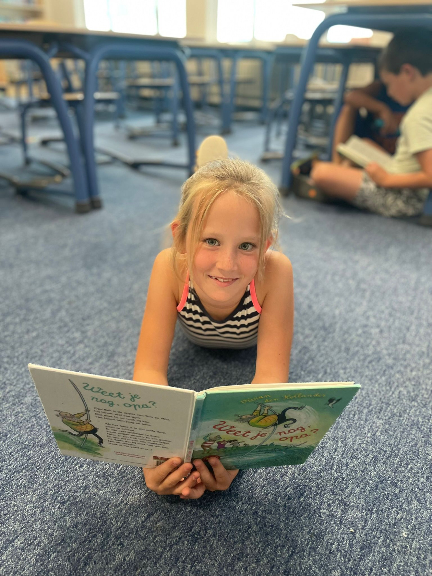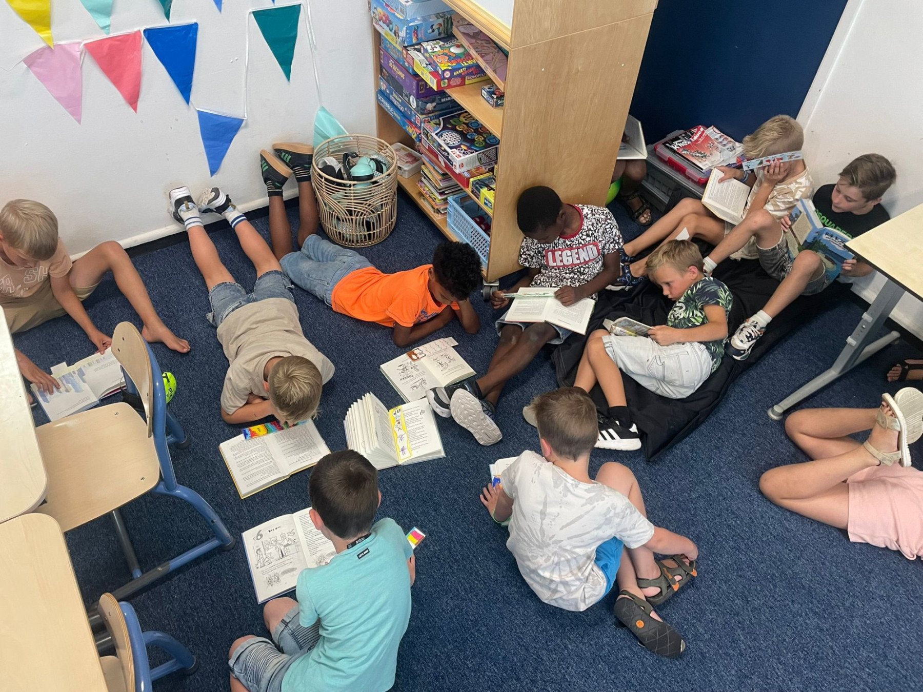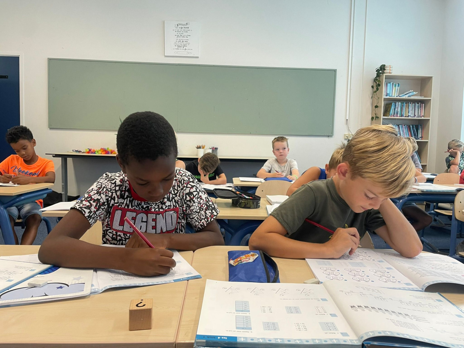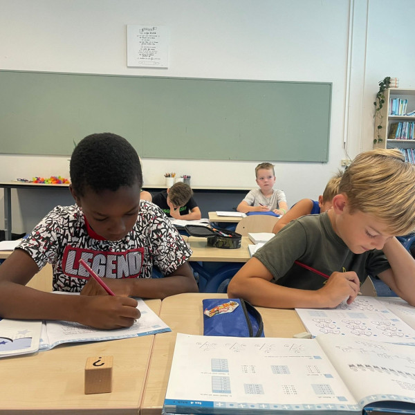 In groep 5 gaan we verder met sommen onder elkaar zetten, we gaan deelsommen maken, we leren de tafels van 6,7,8 en 9 en de andere tafels blijven we ook oefenen. Na rekenen is het tijd voor pauze. We gaan lekker even naar buiten op ons mooie groene schoolplein spelen. Voetballen in de pannakooi, verstoppertje spelen, duikelen op de duikelstang of samen kletsen, er is genoeg te doen!