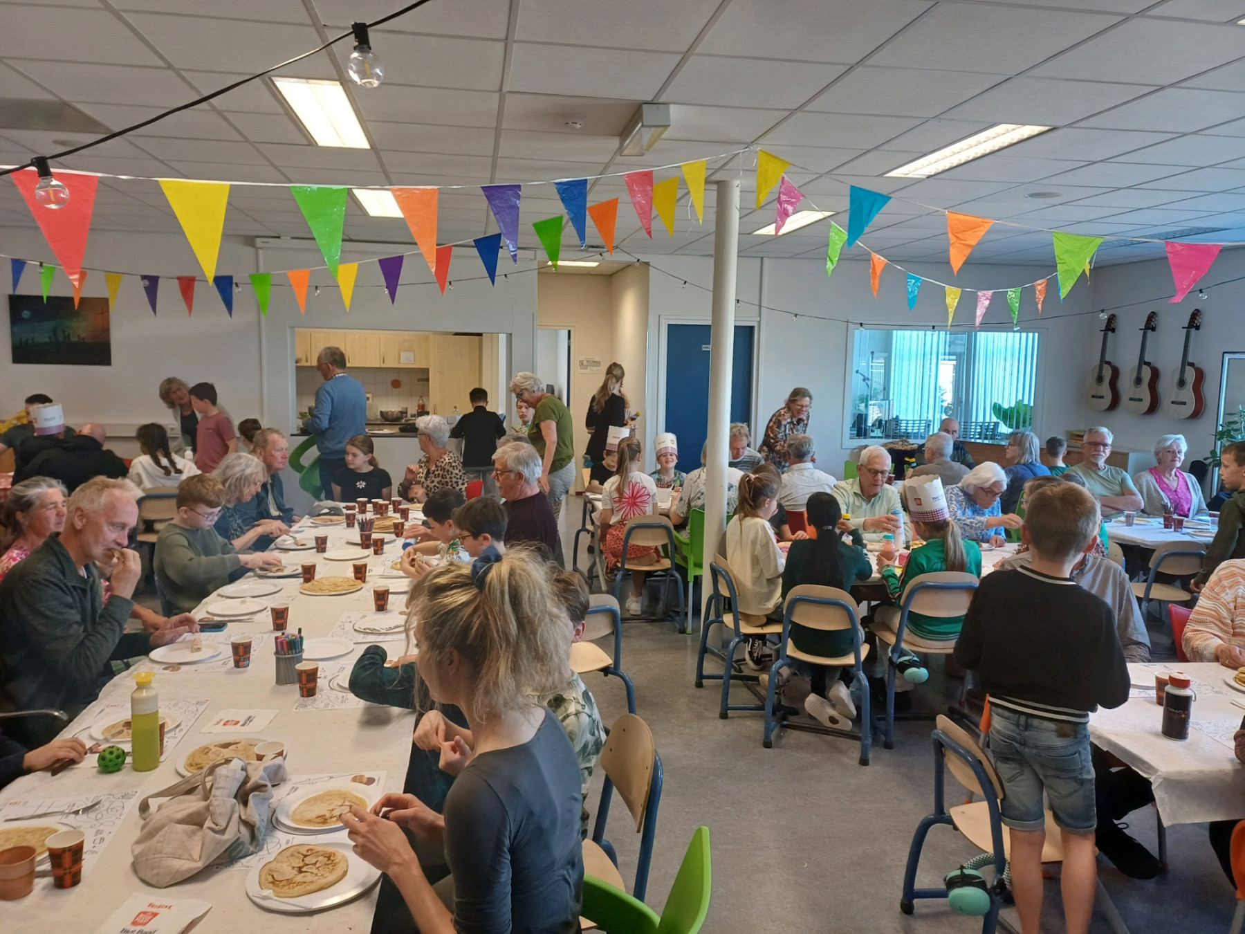 In de middag is het pas écht feest. Spannende verhalen bij geschiedenis, gave opdrachten bij aardrijkskunde en leuke lessen (in de) natuur. We kijken leerzame filmpjes en proberen vooral dingen te leren door te doen. Zelf een maquette maken van WOI (loopgravenoorlog), een hut van de jagers en verzamelaars, wapens uit de Romeinse tijd, een levensechte vulkaan of lekker de natuur in om plantjes te zoeken of de vogeltrek met een verrekijker te bekijken. In de middag doen we ook 2x per week handvaardigheid en/of tekenen.